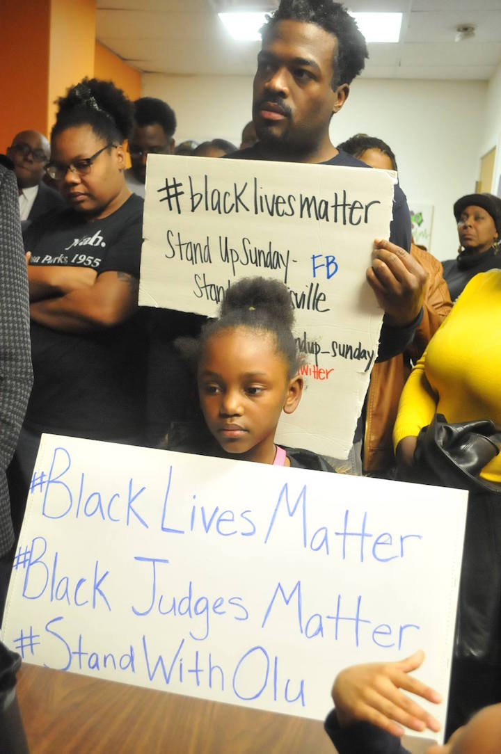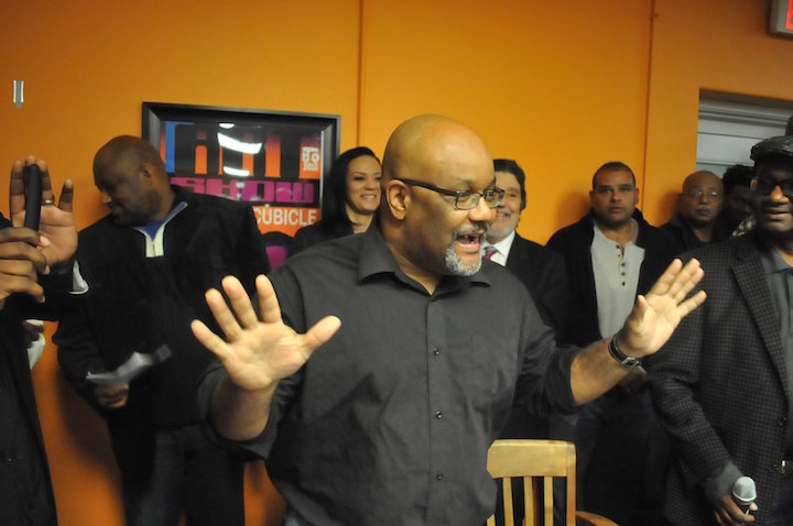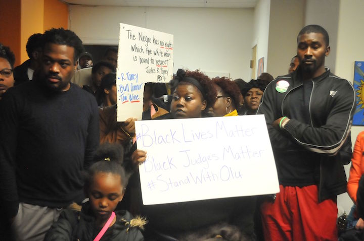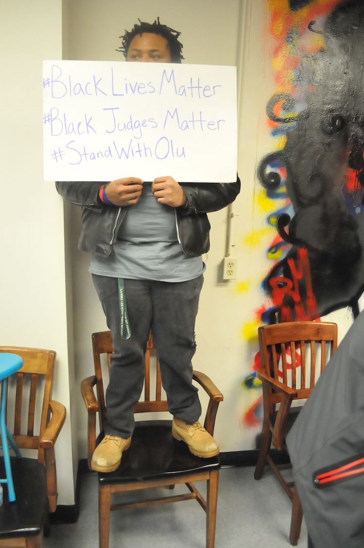 West Louisville, KY – People filled The Fly Cubicle, a neighborhood art gallery and creative space Monday evening for a rally in support of the Honorable Judge Olu Stevens. The keynote address was given by former Louisvillian Boyce Watkins, an entrepreneur and social commentator.
