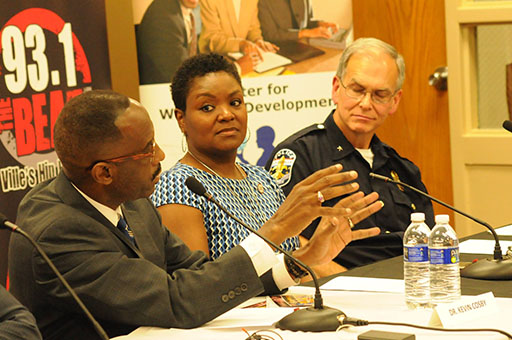 The moderators were Dr. Ricky L. Jones of the University of Louisville and the Ricky Jones Show on 93.1 The Beat and WHAS Radio's Terry Meiners.